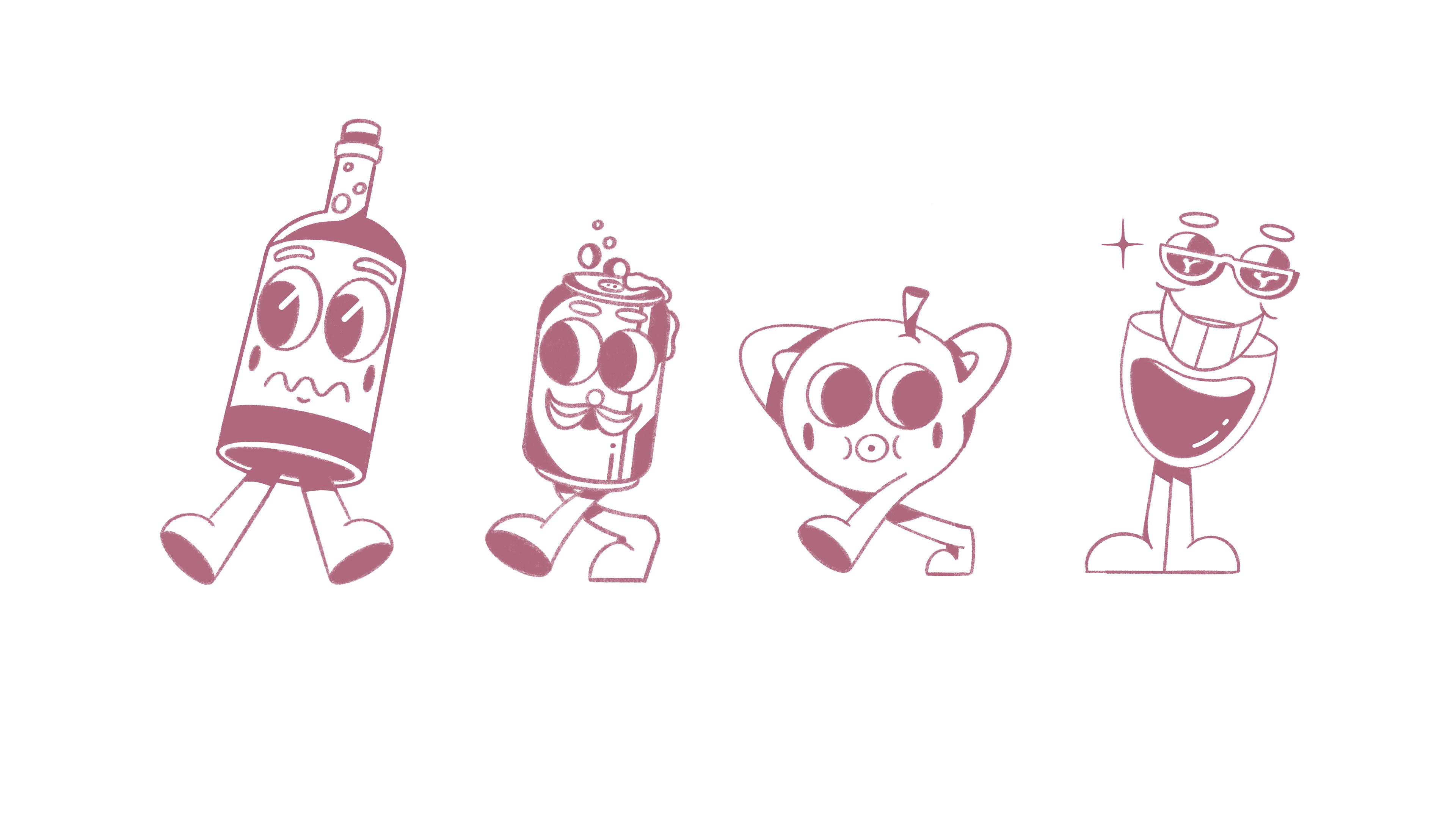 This captured the actual look of wine as well as the fun nature that comes with it. I also illustrated different characters for specialty use featured on the website and the front of the building.